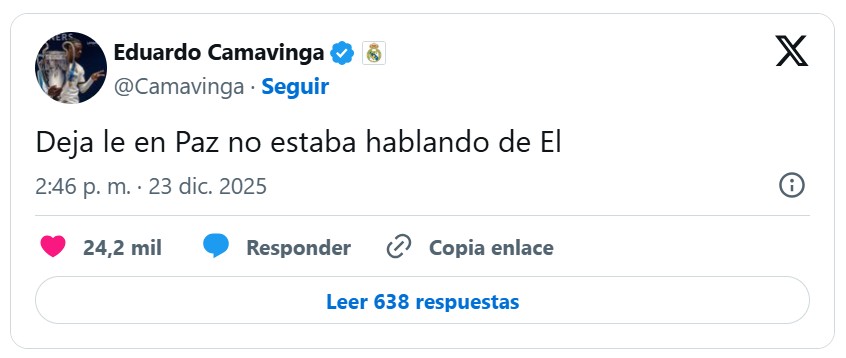 The clip did not sit well within the Real Madrid camp, who felt it misrepresented what actually happened on the pitch. As a result, Camavinga took to social media to clarify the matter. “Leave him alone. I wasn’t talking about him,” he wrote on X, firmly denying any criticism of Vinicius and reinforcing the message of unity within the squad. Despite the recent spotlight on the Brazilian, the dressing room remains firmly behind him.