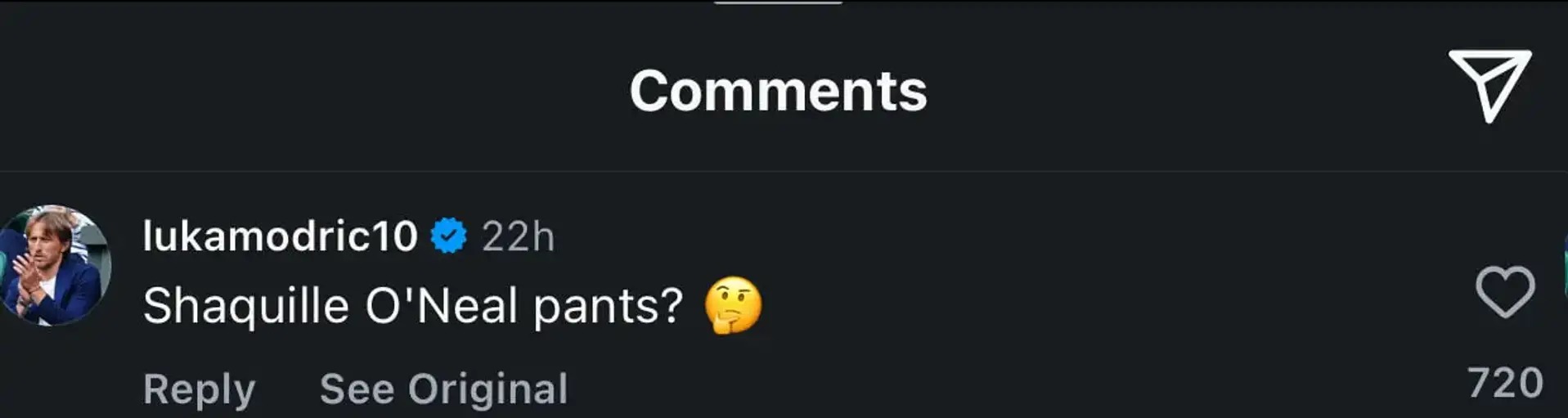 Unable to resist, Modric commented under Camavinga’s post, joking: “Shaquille O’Neal pants?”