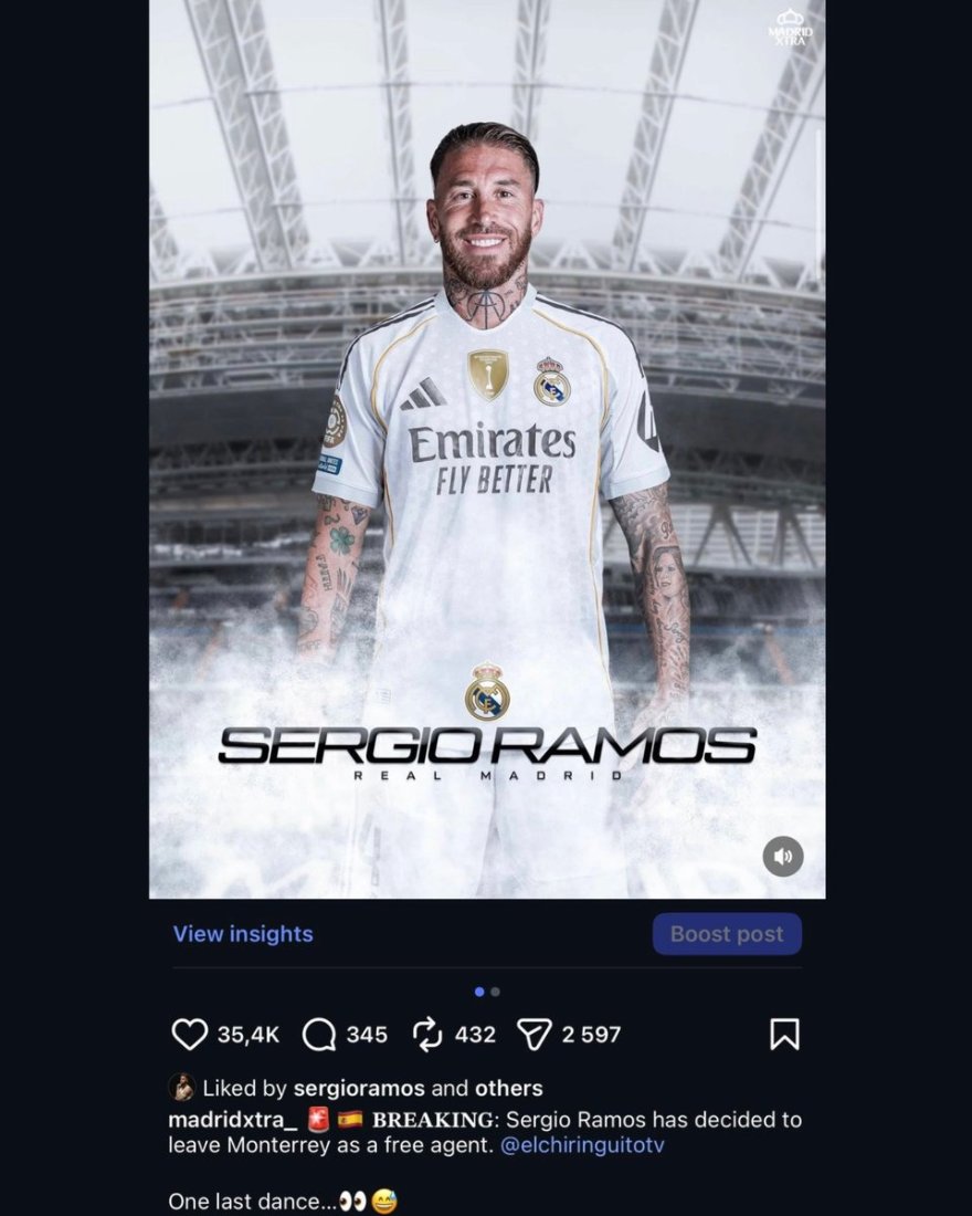 Following the announcement of his departure from Mexico, an edited image of Ramos wearing a Real Madrid shirt was shared on Instagram, and he liked the post. His reaction suggests that he would be delighted to make a comeback.