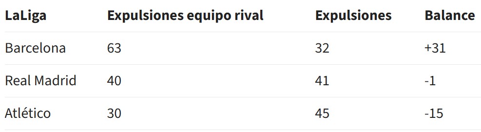 Si bien el Barcelona disfruta de un balance positivo de tarjetas rojas en La Liga (+31 en la última década), la tendencia se invierte en la Liga de Campeones de la UEFA. En Europa, el Barça ha sufrido 12 expulsiones y solo ha visto a sus rivales quedarse con 10 hombres en cinco ocasiones, un balance negativo de -7.