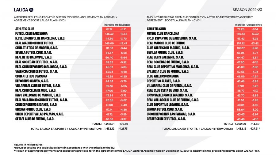 De los 1.292 millones de euros distribuidos en total, más de 420 millones se reparten solo entre estos tres clubes. Las cifras subrayan que, a pesar de un modelo de derechos televisivos más equilibrado, los clubes más importantes de la liga siguen acaparando una parte significativa de los ingresos.