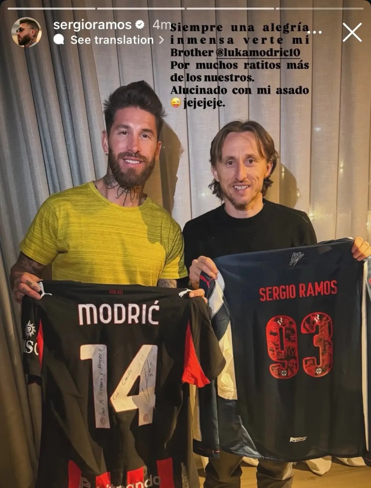 Ramos shared an image of the pair exchanging shirts, with the Spanish defender receiving Modric’s AC Milan jersey. Currently a free agent, Ramos accompanied the post with an affectionate caption: “Always a great joy to see you, brother. For many more moments together.”