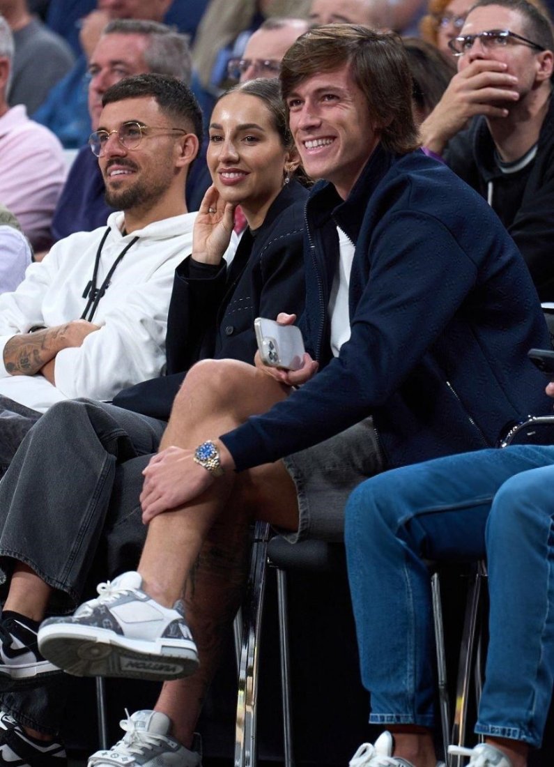 Los dos futbolistas aprovecharon su tiempo libre para animar a sus compañeros madrileños y llegaron juntos para disfrutar del intenso encuentro. Ceballos asistió acompañado de su pareja, mientras que Carreras estuvo acompañado por un amigo mientras ocupaban sus asientos justo al lado de la cancha.